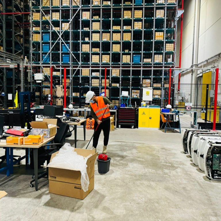 - de retirer la poussière de retirer les objets présents au sol du rack (pièces robots, visserie, articles clients, etc...)